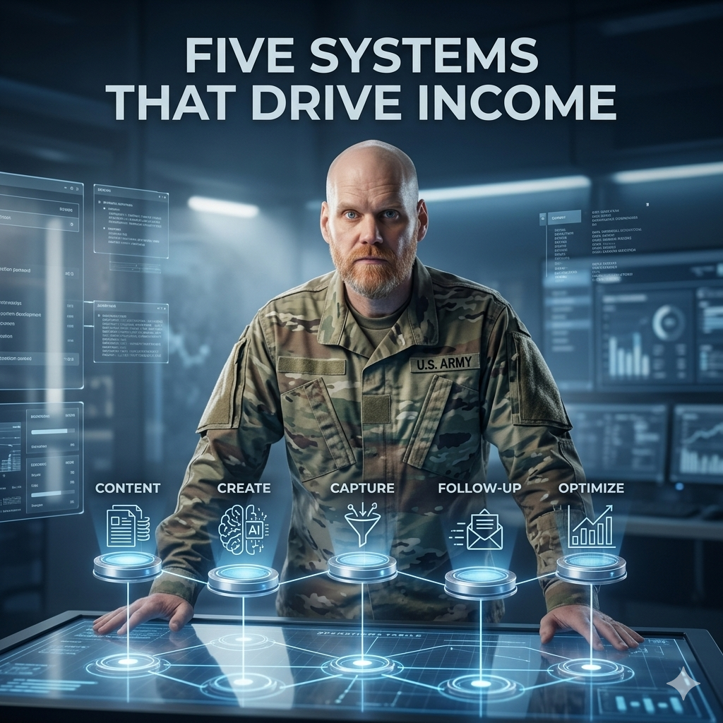 Instead, the system approach asks, “What process can I run even when I don't feel motivated?” By building a repeatable workflow—powered by AI for brainstorming, drafting, capturing leads, following up, and optimizing—veterans can create reliable momentum. One post leads to ten, one email multiplies into a sequence, and one offer becomes a dependable customer path. The outcomes compound, and progress becomes systematic, not accidental.